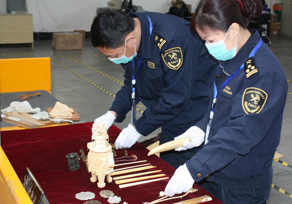 On January 27, in Changchun Customs District, the Customs-stationed Post Office intercepted 16 pieces of ivory products from within an inward mail, such products weighing 2,026 grams in total.