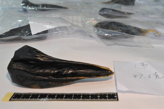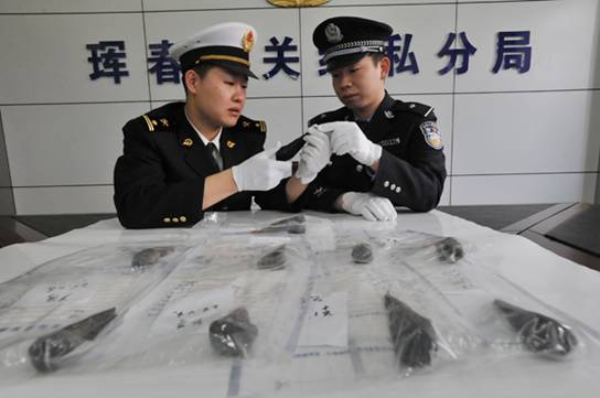 Recently, in Changchun Customs District, Hunchun Customs House officers seized 10 bear galls concealed by a foreign passenger. Through State Forestry Administration identification, the galls included 7 brown bears’ ones and 3 black bears’. At present, this smuggling case is under further investigation and suspects thereof are detained.