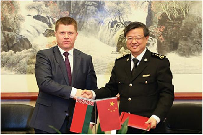 Minister Ni signed with Chairman Senko the Memorandum of Understanding between the General Administration of Customs of the People’s Republic of China and the State Customs Committee of the Republic of Belarus on Strengthening Partnership for Accelerated Customs Cooperation in Respect of Goods by Trans-Eurasian Rail Container Conveyance and the Agreement between the General Administration of Customs of the People’s Republic of China and the State Customs Committee of the Republic of Belarus Regarding Mutual Recognition of the Enterprise Credit Management Programme in the People’s Republic of China and the Authorized Economic Operator Programme in the Republic of Belarus, and signed with Minister Hatchiko the Protocol between the General Administration of Customs of the People’s Republic of China and the Ministry of Agriculture and Food of the Republic of Belarus on Quarantine and Health Requirements for Milk Products for Feeding Purposes to Be Exported from Belarus to China .