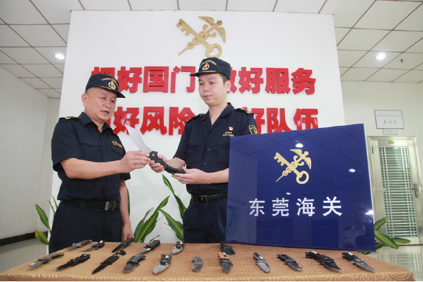 On October 31, Huangpu Customs disclosed that officers of its affiliate, Dongguan Customs, recently seized 56 pieces of controlled knives in express mails.