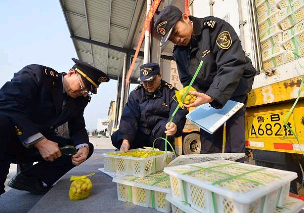 Qingdao Dongfang Dingxin International Farm and Sideline Products Trading Center is the first designated port of entry for fruits in Shangdong Province where the new model of Customs-CIQ 3-Singles is trialed. The Customs-CIQ 3-singles model, which means “single declaration, single inspection and single release” based on the cooperation between Dagang Customs House(affiliated to Qingdao Customs District) and Qingdao Entry-Exit Inspection and Quarantine Bureau here at the Trading Center, combines the linear and separate operation systems of two different departments and turns them into one synchronized and “parallel” clearance procedure. This model helps cut to the utmost the clearance time. Before, 3 to 5 days is required for the clearance and now 24 hours will be enough.