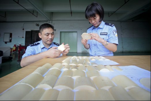 On 25th and 29th of July 2014, Gongbei Customs found out 24 and 32 white ivory slices in vases respectively from within two EMS parcels fromJapan. The Customs immediately investigated into the two cases. The smuggling suspect Xie absconded then, but has been captured.