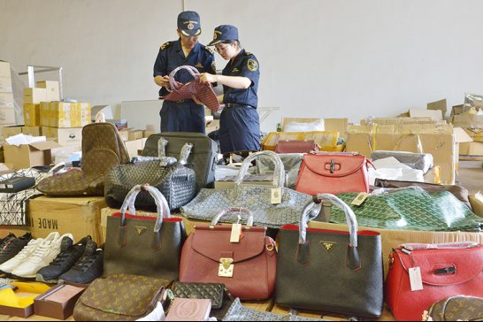 Customs officers seized the bags and shoes suspected of intellectual property right infringement.