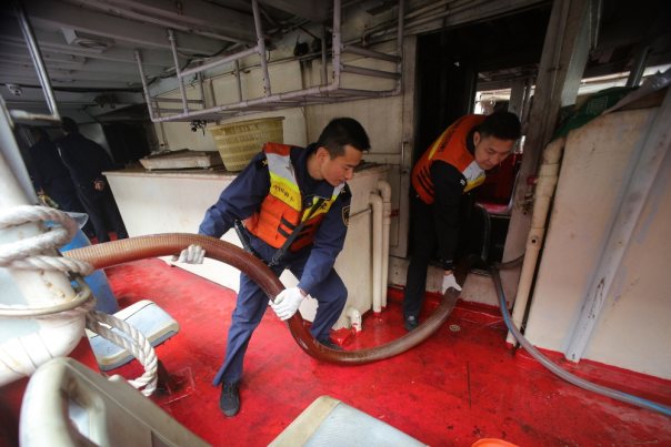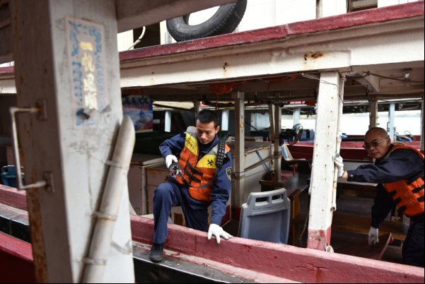 Customs officers were inspecting the articles on a mobile fisher-boat.