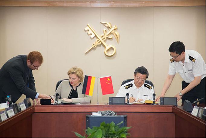 Minister Ni Yuefeng and Ms. Julia Kloeckner, German Minister of Food and Agriculture, sign the MOU.
