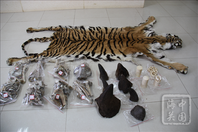 Airport Customs House (affiliated to Kunming Customs District) intercepted a smuggling case in which some endangered animal products were illegally brought in by the smugglers, said Customs officers a few days ago. 1 Panthera tigris corbetti skin, 7.7 kilograms of tiger bone, 9.7 kilograms of White Rhinoceros horn and 1.8 kilograms of ivory products were seized in the case. This is the biggest smuggling case of endangered species products that the Customs administration has intercepted in luggage control in these past several years.
