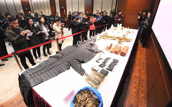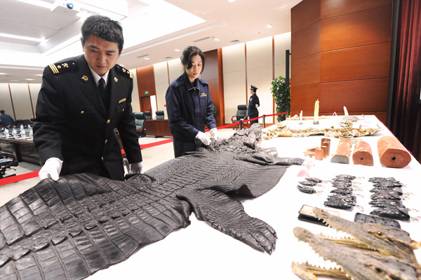 On March 24, Zhengzhou Customs transferred 488 pieces of confiscated endangered wild animal and plant products to the Wuhan Office of the Endangered Species Import and Export Management Office under the State Forestry Administration.