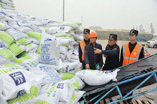 It’s the most important time for spring planting in the year. Xinsha Customs House(affiliated to Huangpu Customs District), implementing the preferential policies to support agricultural development promulgated by the central government, has adopted an array of measures to make clearance easier for the fertilizer importers, which include the 7*24 hour work-at-appointment scheme, priority over customs formalities handling and speeding up clearance. Efforts made by Customs officers is a great support to the swift and efficient clearance of the imported agricultural materials.