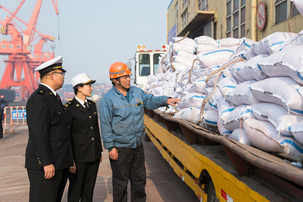 At spring plowing season with weather getting warm, large amounts of imported fertilizers were swarming into the Customs port. Dagang Customs visited fertilizer importers to publicize preferential policies, answer questions and guide accurate declarations. Since fertilizer import is urgently needed, the Customs set up an information desk and a “green window for imported fertilizers” at the clearance site to give priority to imported fertilizer release, along with around-the-clock reservation service.
