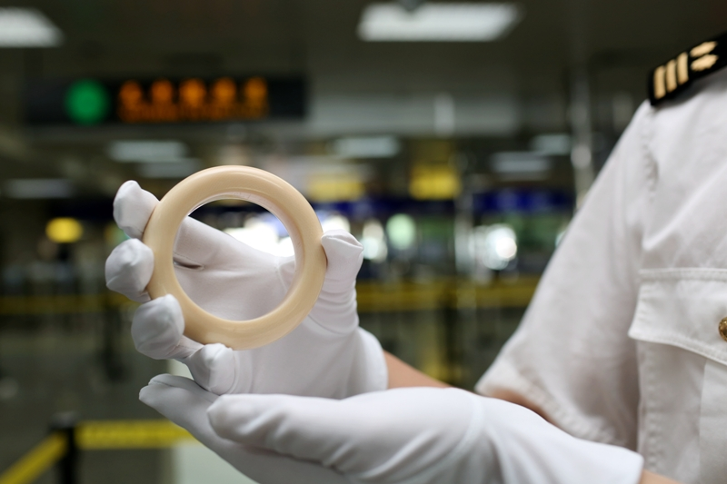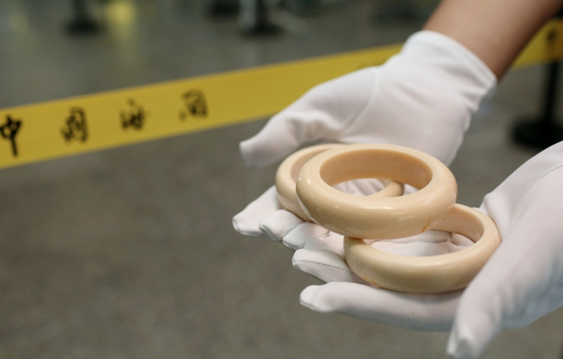 On May 24, Gongbei Customs District’s Jiuzhou Customs House seized three maize-yellow bracelets, seemingly made of ivory, from two Chinese passengers back from Nigeria. On May 31, South China Wild life Identification Center confirmed those bracelets to be ivory products.