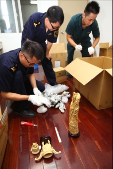 Recently, Beijing Customs, working with Shijiazhuang Customs, successively seized 3 batches of smuggled ivory products from within parcels sent from Japan. These ivory products totaled 1,639 pieces, weighing 101.4 kilograms. Besides, two smuggling suspects were captured.