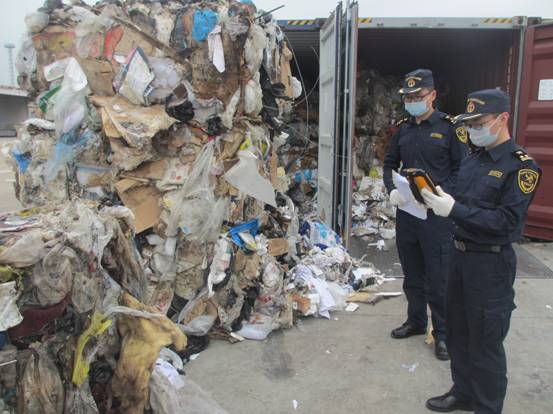 On May 23, Ningbo Customs announced that it had successively seized 4 batches of smuggled solid wastes, totally in 15 containers weighing more than 360 tons. The Customs officers found out that those solid wastes declared as “waste plastics” were mainly household refuse including waste plastic bags, waste paper, old clothes, ring-pull cans and shoes. By official professional identification, those solid wastes were largely below national environment control standards. Now they have been returned.