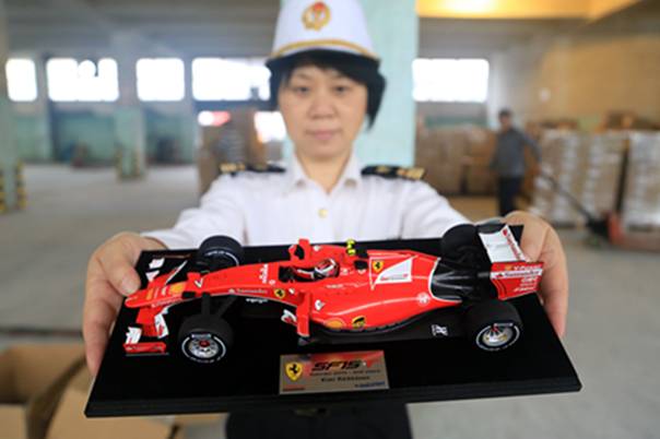 Recently, a company from Zhongshan declared ordinary trade of 8,796 sets of model cars, valued at USD29, 600 intotal. But the Customs House found out that 662 sets therein with the logos of “Ferrari”, “FORD and its mark”, “HONDA”, “JAGUAR and its mark” were suspected of infringing on involved trademark rights. Through identification by trademark holders, the 662 sets of model cars were infringing products, which have been detained by the Customs for further investigation.