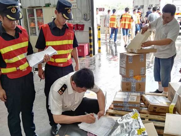 Customs officers were inspecting cargos overtime under high-temperature and rainstorm weather.