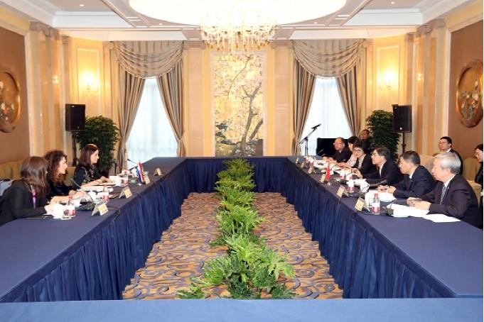 Vice Minister Wang Lingjun meets with Ms. Marija Vu?kovi?, Minister of Agriculture of Croatia in Shanghai.