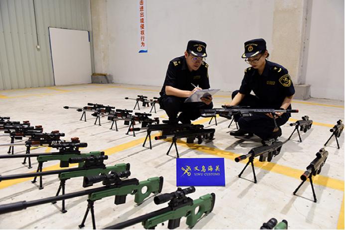 On the basis of risk assessment, the subordinate Yiwu Customs House intercepted the consignment declared as “plastic toys” and seized these imitation guns through manual inspection. The imitation guns included sniper rifles, submachine guns and pistols, all resembling real guns in appearance and posing certain lethality.
