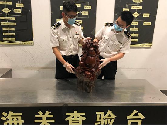 On July 30, Zhejiang Province Forest Product Inspection Station identified that an individually 21.15-kilograms wooden handiwork, earlier seized by Hangzhou Customs, was made of endangered red sandalwood. This case marked the individually heaviest red-sandalwood intercepted at Hangzhou International Airport since this year.