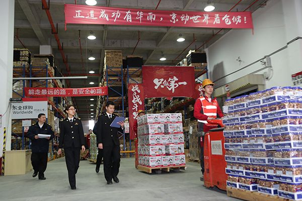 Customs officers inspect cross-border bonded imports in logistics zone of Nansha Bonded Port Area