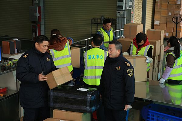 Customs officers conduct on site inspection for cross-border e-commerce