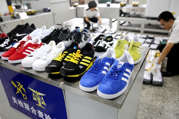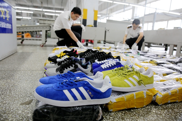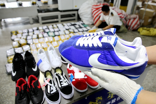 On September 22, Dalian Customs intercepted an intellectual property right (IPR) infringement in postal parcels, with 653 pieces of counterfeit goods involving many branded sport shoes and garments.