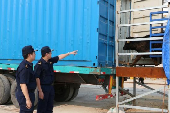 Under the customs-quarantine integration, Dongying Customs opened a green channel for the import cattle, with cargo declaration processed in a one-off manner; Customs officers went aboard the carrying ship for cattle inspection and quarantine, reducing both clearance procedures and detention time; till the morning of Sept 12, all the 3,578 cattle were unloaded on the basis of Customs release, and then transported under Customs control to local quarantine station.