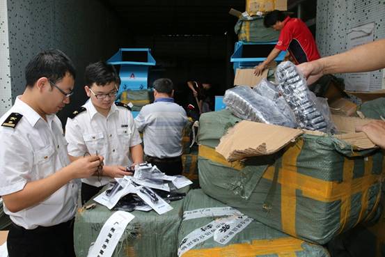 Customs officers were counting seized IPR-infringing cell-phone accessories.