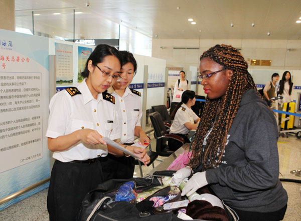 In cooperation with airlines and other port administrations, the Airport Office of Jinling Customs House (affiliated to Nanjing Customs District) worked out control service plan in advance and offered consulting services for travelers on the inspection spot through bulletin boards and professional consultants. The travelers can also dial customs service hot-line 12360.