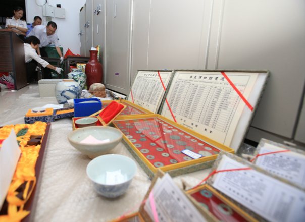 The seized relics included Buddha statues, porcelains, coins and paintings, valuable articles such as 3 blue-and-white fish-pattern pots, 1 Jun-kiln-made bowl, 3 Buddha-sitting statues, 1 vase of the Qing dynasty, and 1 Buddha head statue.
