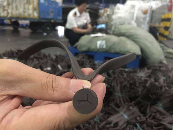 A few days ago, a trading company based in Fuzhou declared to Xiamen Customs for exporting slipper laces. The Customs officers found that bundles of black slipper laces were only placed in green plastic bags and that doubtable “puma” graphical logo was printed on the surface and base buttons of those laces, totaling 7,680 laces.