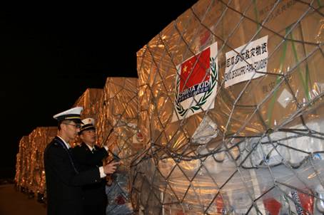 On the night of April 26, Tianjin Customs-stationed airport officers conducted fast clearance for the first batch of relief goods supplied by China to earthquake-stricken Ecuador, totaling 416.11 tons worth RMB11.0298 Million.