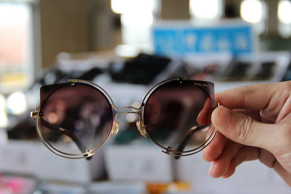 The counterfeit sunglasses on display with “MIU MIU” mark