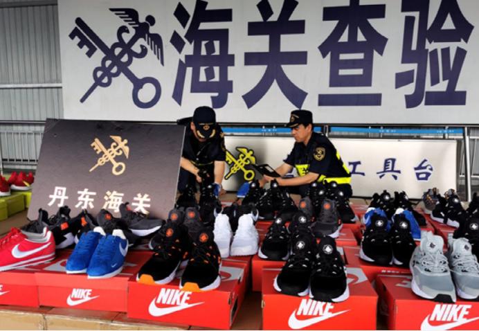 Recently in Dalian Customs District, an outbound lorry with export shoes was intercepted by Dandong Customs House as the officers found the lorry concealing 2,173 pairs of branded sneakers including 913 pairs with NIKE trademark and 1,260 pairs with ADIDAS trademark.