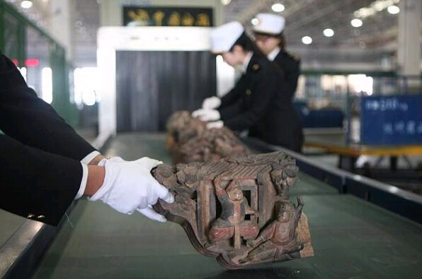 On October 31, when exercising control over a consignment of express parcels exported to Hong Kong, officers of Xiaoshan Airport Customs House (affiliated to Hangzhou Customs District) noticed a parcel with the declaration name of “handicrafts”. “The items in the parcel were wrapped by materials made of wood. Generally speaking, items which have packaging like this might be those fragile valuables”, recalled Ni Chushen, the Customs control officer on duty that day. After X-ray scanning and manual inspection, Customs officers made a preliminary judgement that the 5 delicate wooden pieces they had found in the parcel were parts named “bracket” or “corbel”of ancient buildings. On November 10, these wooden pieces were confirmed by the Authentication Center of Cultural Heritage of Zhejiang Province as sparrow braces (a unique part in China’s ancient buildings) of Qing Dynasty.
