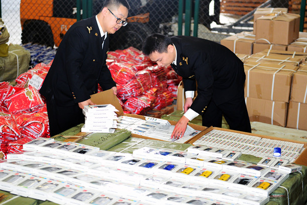 On October 25, when examining a consignment of export goods, officers of Zhoushan Customs, affiliated to Hangzhou Customs, found one carton appearing different inside the container. When opening the carton, they saw many “charge pals” in it. However, the declaration form told that the contents were padlocks and wall paintings; moreover, the red-and-white labels printed on the “charge pal” package did not match with the trademarks printed on the products.