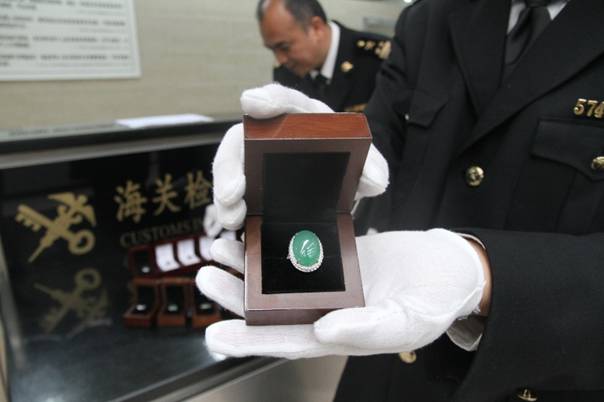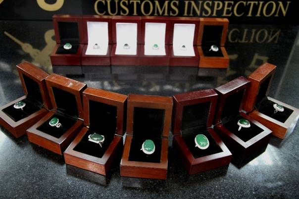 On April 13, Gongbei Customs intercepted a female passenger from Macao entering with 13 gemstone rings without declaration. Now, this case has been transferred to anti-smuggling department for investigation.