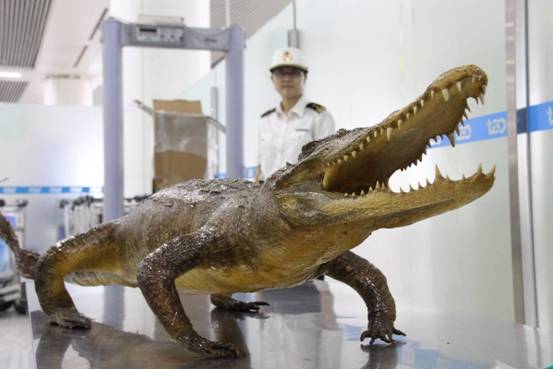 On August 25, in luggage control, Liuting Airport Customs Office (affiliated to Qingdao Customs District) seized a specimen of whole crocodile illegally brought in by a passenger. The specimen is 1.6m long and 4.1kg weighted.
