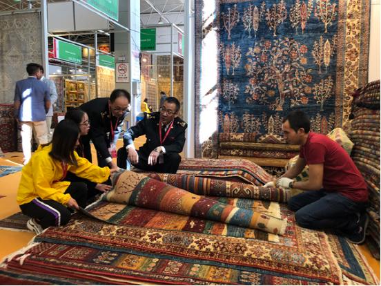 For this Exhibition, Xining Customs processed a total of 61 batches of inbound carpets, totaling 27,000 square meters and a value of USD 990,000. The exhibitors included not only traditional carpet manufacturers from Iran, India, Afghanistan, Nepal, and Pakistan but also carpet distributors from such west countries as Germany and USA.