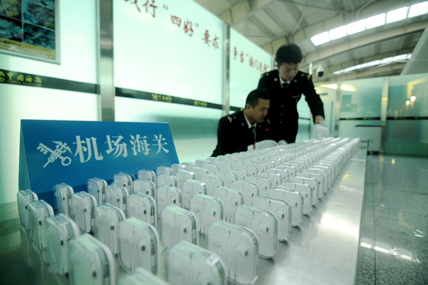 On October 24, at Dalian Airport, the Customs seized mobile phone accessories infringing the trademark of “Apple”, carried by a passenger.