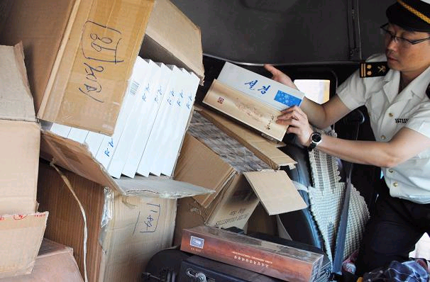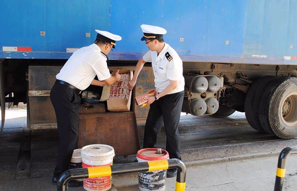 Officers of Quanhe Office stationed by Hunchun Customs House (affiliated to Changchun Customs District) found 90,000 smokes of cigarettes hidden in an inward truck a few days ago.