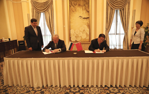 Minister YU Guangzhou and Mr. Bulavin, Head of the Federal Customs Service of Russia sign the