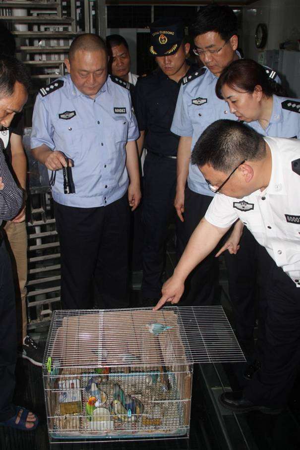 On May 4, Shantou Customs captured a criminal suspect smuggling live parrots outward and seized 13 parrots from his dwelling. With other parrots seized at Chaoshan Airport, the Customs detained a total of 57 live parrots, marking the first seizure of rare wild animals smuggled at the exit of Shantou.