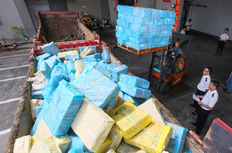 Since 2016, Gongbei Customs has harmlessly destroyed about 1,400 tons of smuggled frozen foods.