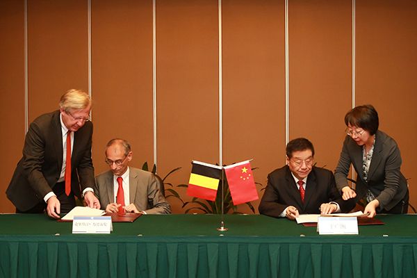 Minister YU Guangzhou signs the Minutes with Kristian Vanderwaeren, Administrator General of