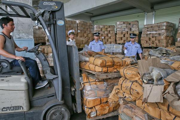 Customs officers and anti-smuggling Customs officers were examining the sea food.