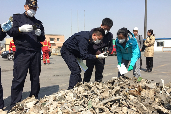 Dalian Customs officers were inspecting the solid waste.