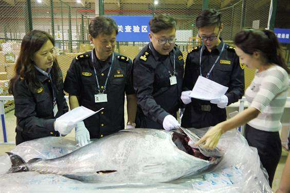 On May 17, one fresh frozen blue-fin tuna, weighing 56.8 kilograms, was imported by sea to Yantai International Airport. Yantai Customs (affiliated to Qingdao Customs District) and local China Inspection & Quarantine (CIQ) agency jointly cleared the fish by the “joint inspection, single release” mode, quickly finishing the first import of such tuna into Shandong Province.