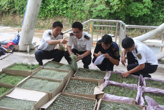 Recently, Kunming Customs District-affiliated Mengla Customs, cooperating with Mengla Entry-Exit Inspection & Quarantine Bureau, jointly inspected an inbound vehicle carrying imported dendrobium fresh cut flowers and finally seized five boxes of undeclared “air-plant pineapples” from within the vehicle, totaling 8,460 plants weighing 120 kilograms, worth 100,000 yuan or so. This is the first seizure following the setup of Mohan Port joint “Customs and Inspection & Quarantine Bureau” Cooperation Program in Mengla County, Yunnan Province.