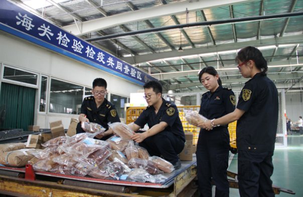 On June 14, Tianjin Customs announced that its Airport Customs House, in cooperation with the local Quality Supervision, Inspection and Quarantine agency, seized a batch of banned animal products from an inbound mail, including fish glues, deer tongues, dried sea cucumbers, and pilose antlers, totaling 29.5 kilograms worth nearly 100,000 China yuan.