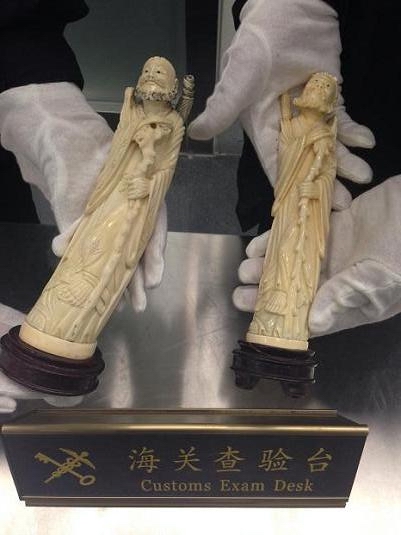 Officers of Customs Office at the Airport stationed by Wenzhou Customs House (affiliated to Hangzhou Customs District) detected a circumstance that involved the illegally bringing in of ivory products by a passenger a few days ago. Customs officers found 2 finely -made ivory figures with a total weight of 480 grams in the passenger’s luggage.