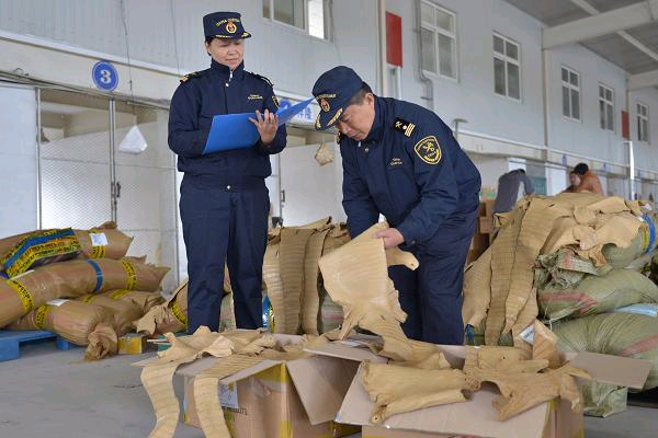 A few days ago, officers of Yantai Customs House (affiliated to Qingdao Customs District), when exercising control over express mails and passenger luggage at the airport, intercepted two cases in which the endangered animals products were illegally brought in. 86 crocodile skins with a street value of RMB2.58 million were seized, among which 66 were tanned ones and the other 20 were unprocessed ones.